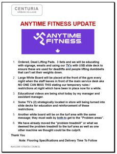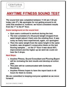 Update from Anytime Fitness Regarding Noise Issues on January 10th.